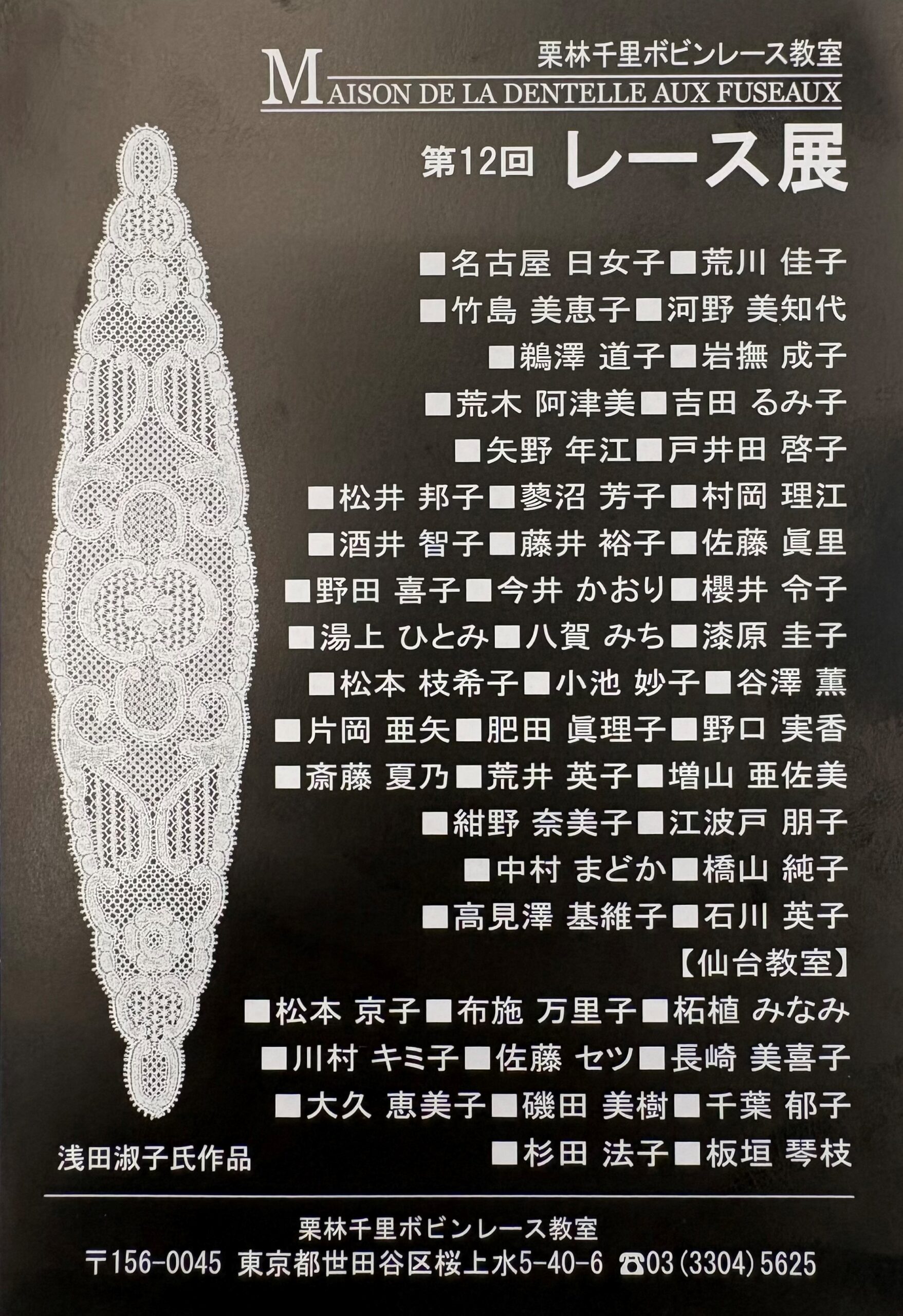 2026.04.23 【個人会員】栗林千里さんレース展のお知らせ 個人会員栗林千里さんからレース展のお知らせです。 会期2026年5月28日(木)~31日(日) 時間午前10時半~午後6時まで(最終日は午後3時) 会場銀座洋協ホール 東京都中央区銀座6-3-2 ギャラリーセンタービル6F 03-3571-3402 https://www.yokyo.or.jp/hall/contact.html#map