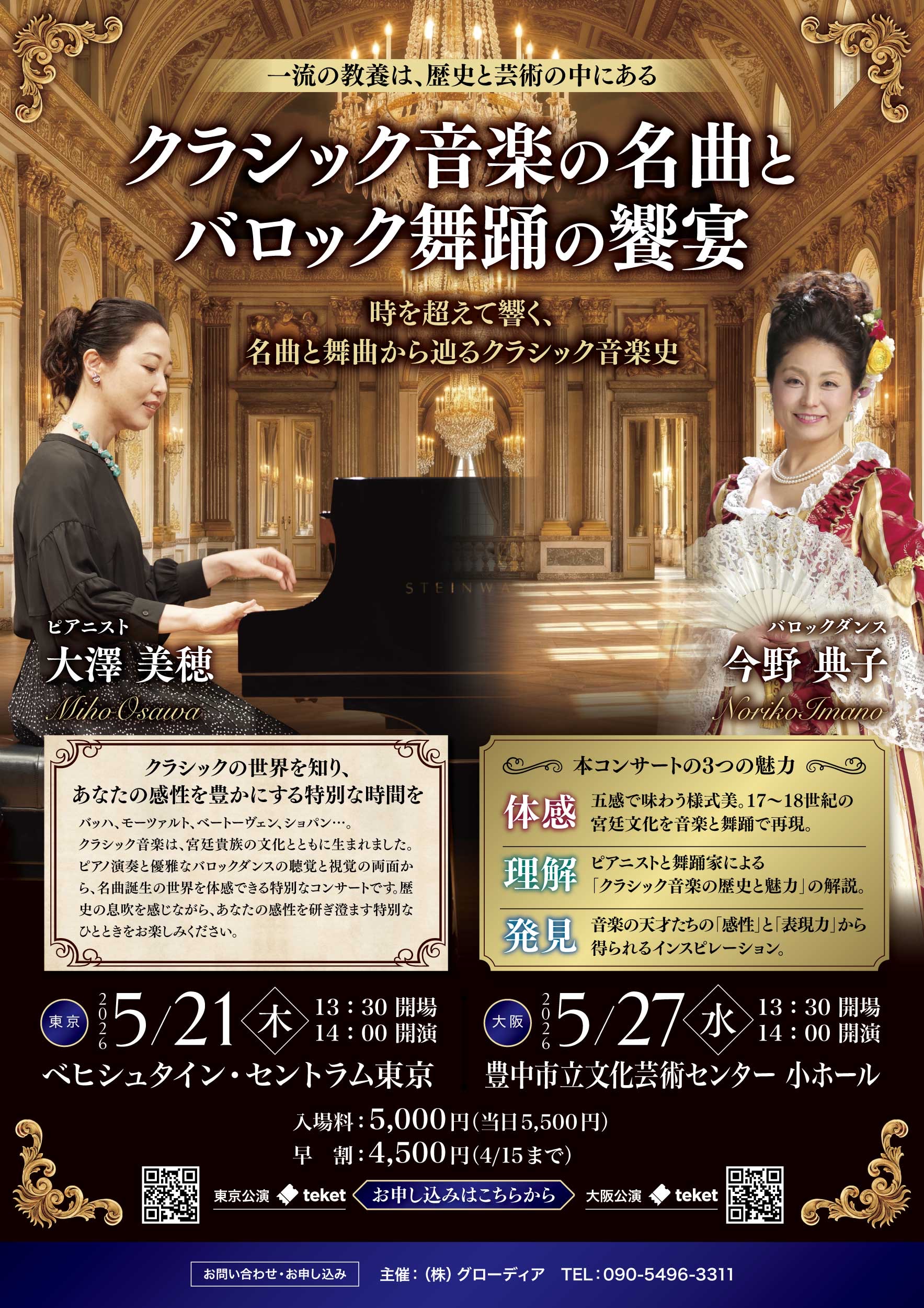【個人会員】大澤美穂さん「クラシック音楽の名曲とバロック舞踊の饗宴」